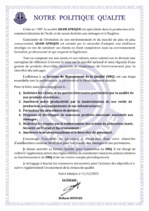 Adam Afrique est membre de l’Association Ivoirienne de Normalisation (CODINORM) et répond ainsi aux normes de production et de qualité sur le plan Ivoirien. Notre expertise en collaboration avec CODINORM nous permet de répondre à vos attentes :